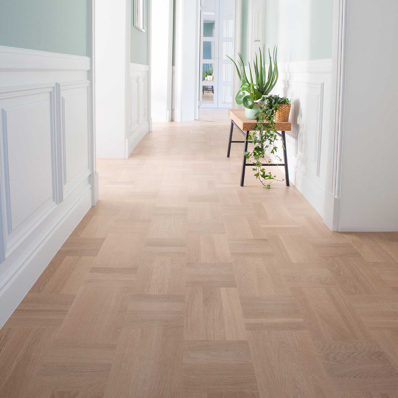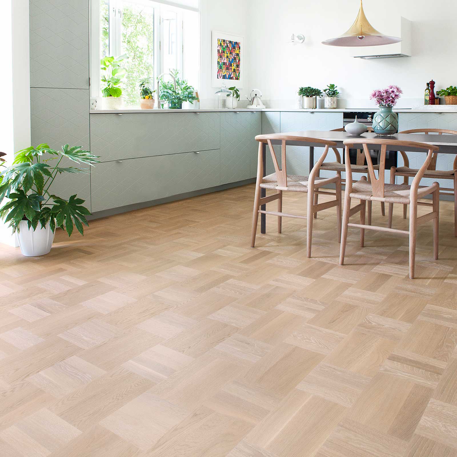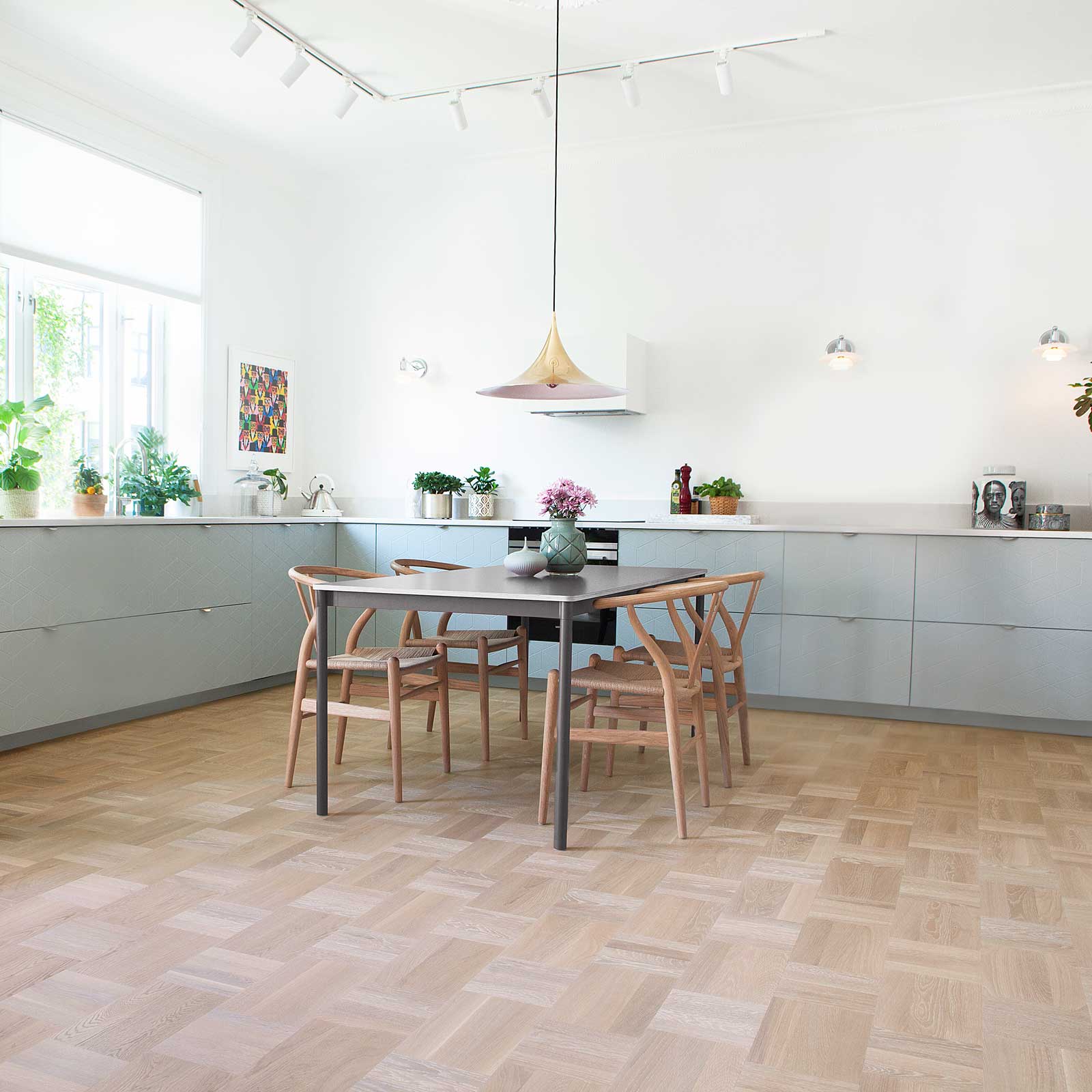 - Træsort og nuance: Eg, lys og hvidtonet (Eg Scandinavia)