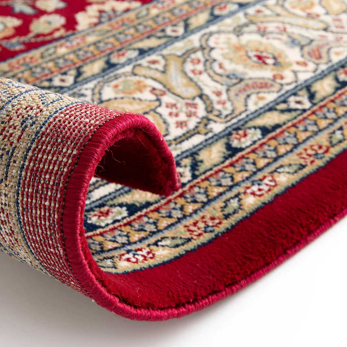 - Klassisk æstetik, nem vedligeholdelse: Du får et smukt "allover" mønster i varme, røde nuancer, der ligner et ægte tæppe, men i 100 % polypropylen, hvilket gør det utroligt nemt at holde pænt.