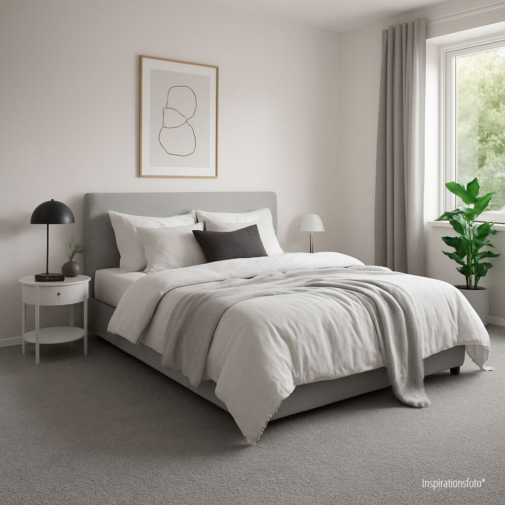 Hemmeligheden bag den luksuriøse oplevelse ligger i den tætpakkede shag-luv. Med en højde på 17-18 mm og en solid vægt på 2.500 gram pr. kvadratmeter, tilbyder tæppet en dybde og blødhed, der er svær at modstå. Den neutrale, grå farve giver et roligt og sofistikeret lærred, der lader dine møbler og din personlige stil skinne igennem.
