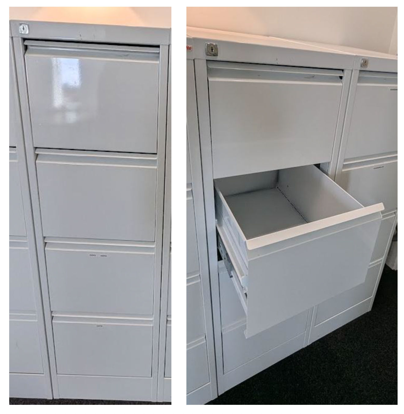 Disse hængemappeskabe kommer fra et revisionskontor og er velholdte.