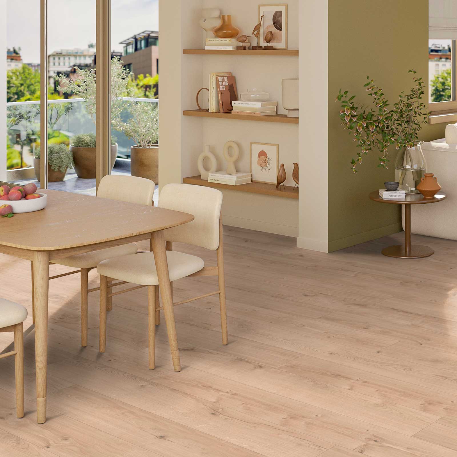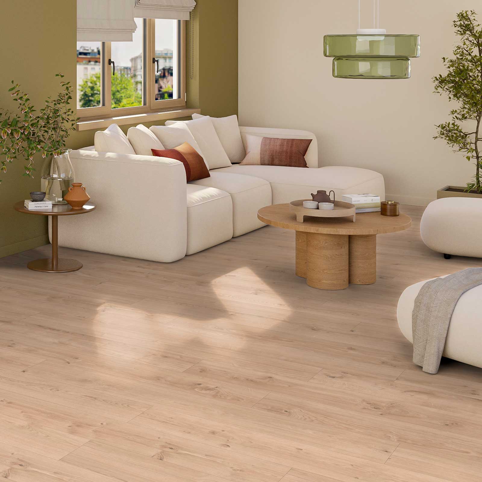 Nomad Oak LIGHT fanger essensen af et lyst trægulv. Overfladen er ikke kun mat, men også let præget, hvilket giver en realistisk træfornemmelse under fødderne. Strukturen følger årer og knaster i designet, hvilket giver en autentisk oplevelse, der er svær at skelne fra ægte træ. Den lyse farve danner en perfekt, neutral base for enhver indretningsstil.