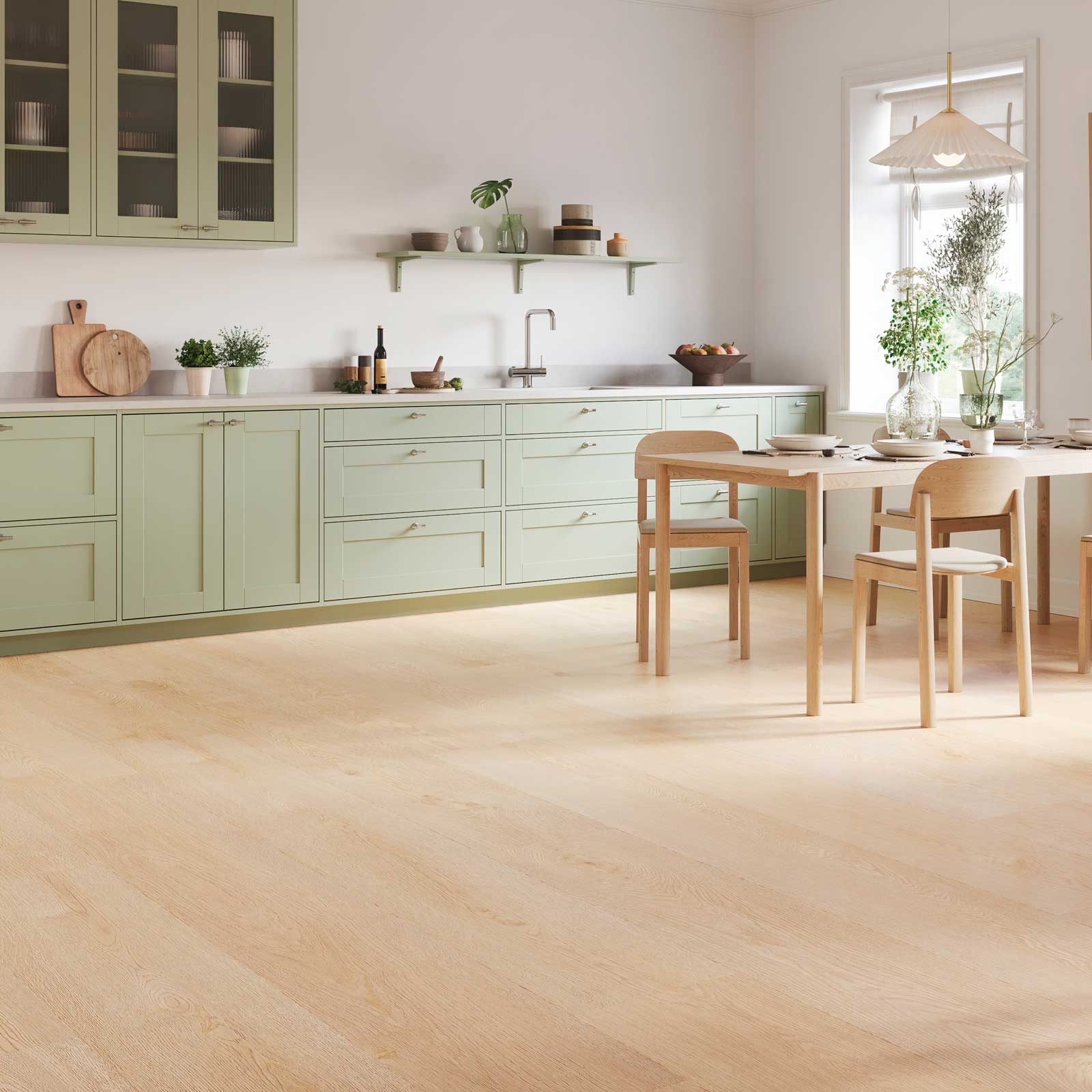 Chatillon Oak SAND fanger på smukkeste vis en naturlig og varm æstetik. Overfladen er designet med en præget træstruktur, der følger mønsteret i træets årer og knaster, hvilket giver en realistisk følelse under fødderne. Den matte finish tilføjer et moderne og sofistikeret touch, der fremhæver gulvets autenticitet.