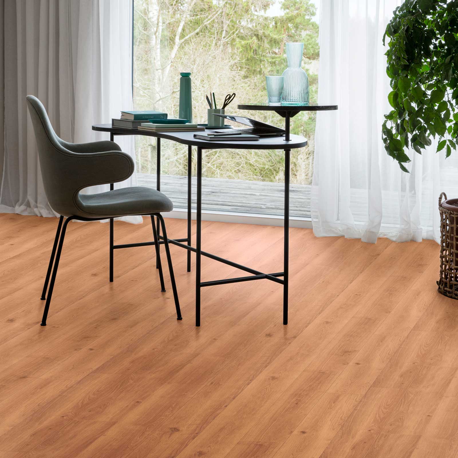 Brook Oak NATURE rammer den perfekte balance i et naturligt egetræsdesign. Farven er hverken for lys eller for mørk, men har en varm og autentisk glød, der passer til enhver indretningsstil. Gulvet er designet som en klassisk planke med 4-sidet fas, der smukt indrammer hver planke og giver gulvet et dybt og naturtro udseende.